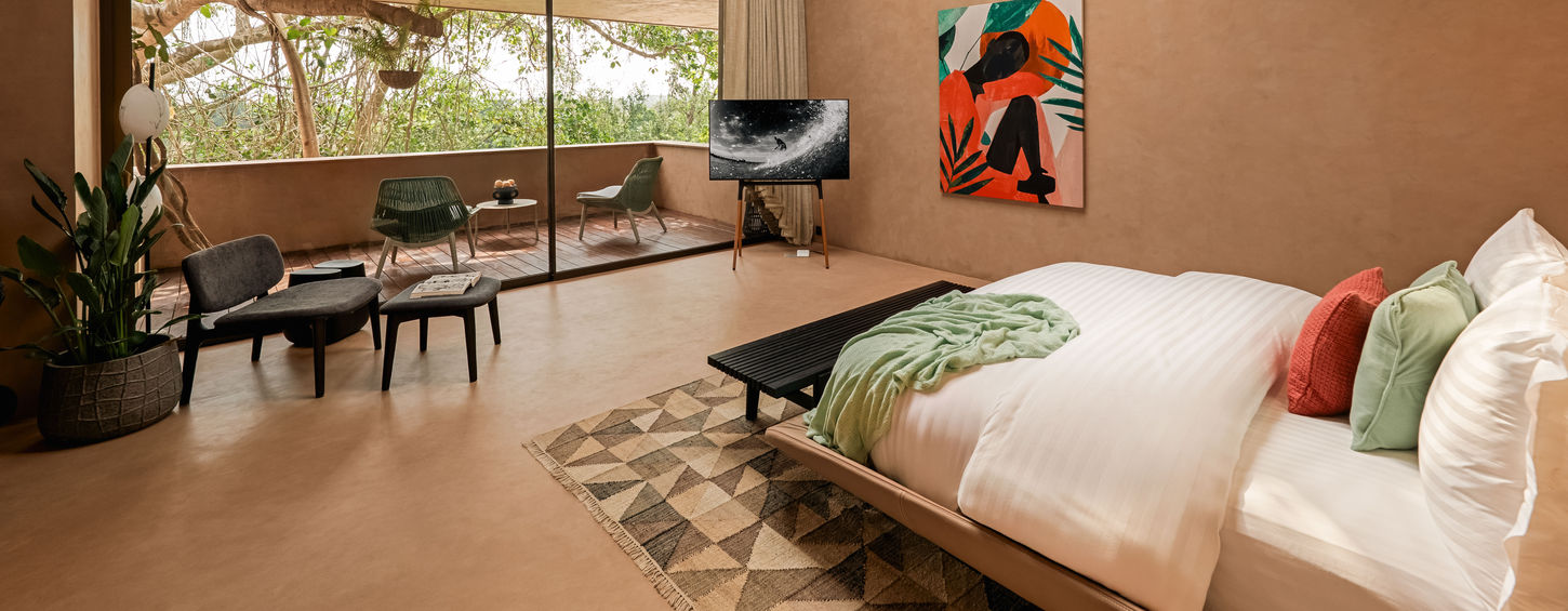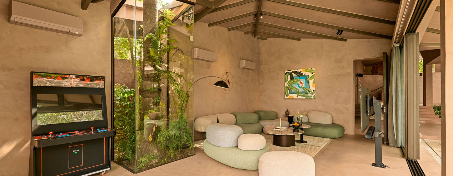 Nestled in lush North Goa, our villa in Moira blends modern luxury with nature. Thoughtfully designed around 62 mature trees, this private retreat offers comfort, privacy, and an immersive escape where every moment feels effortless and serene.